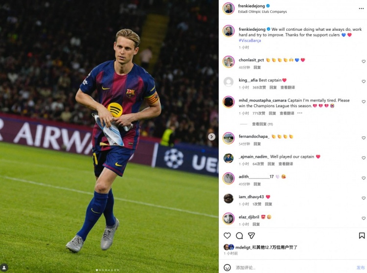 德容社媒鼓励球队:我们会继续坚守 应该做的,并要提升表现