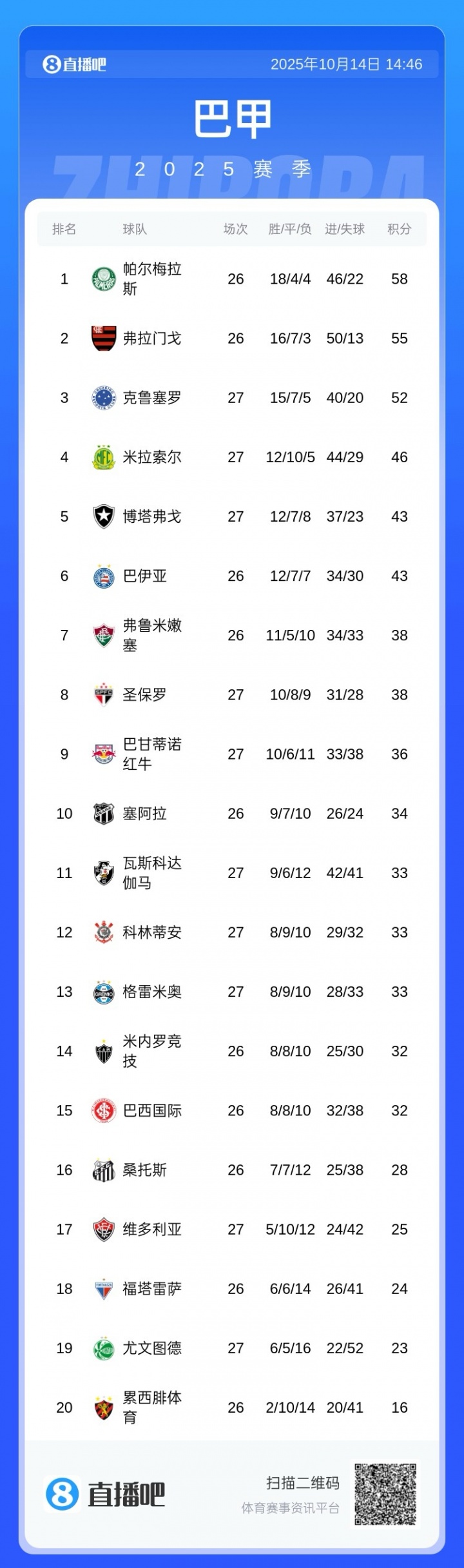 桑托斯目前在巴甲处境危急,26轮28分排名第16位,面临两年内第二次降级的严重风险。若桑托斯成功保级,苏超在线直播高清视频无插件内马尔大概率将留队;若再度降级,迈阿密国际的希望将重燃。