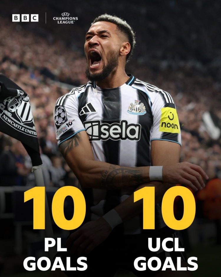 还是欧冠好打!纽卡本赛季4场欧冠进10球,与10场英超得分 相同