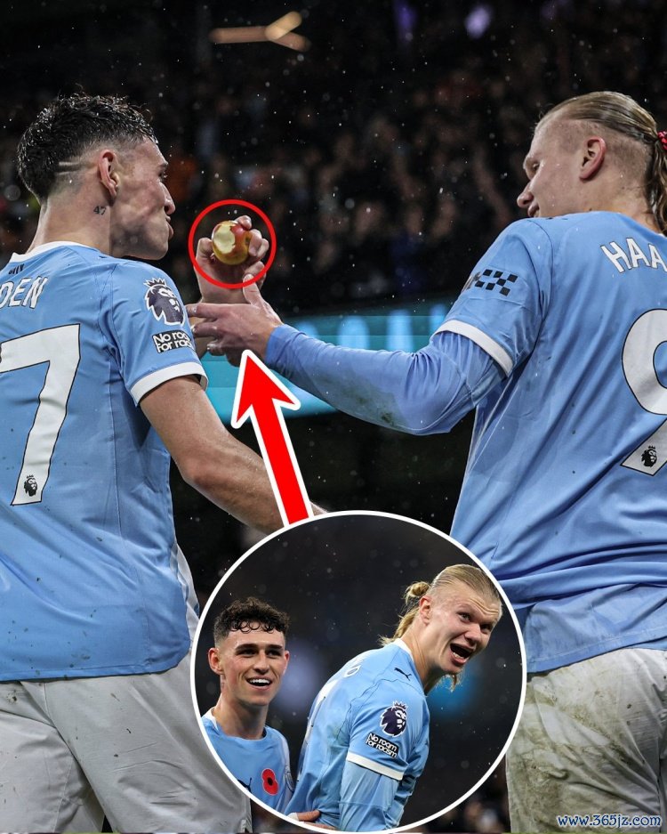 另类庆祝!多库破门之后,哈兰德与福登吃苹果庆祝